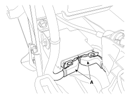Поднимите фиксатор разъема SRSCM и отсоедините разъем (А).