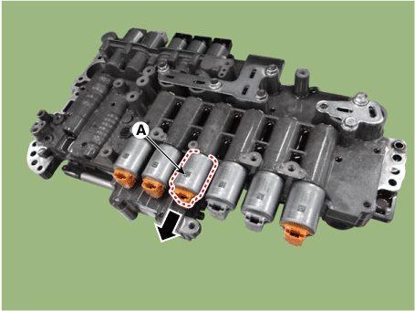 Снимите опорный кронштейн электромагнитного клапана (А).
