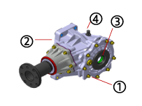 Движущая сила, передаваемая от двигателя и трансмиссии к раздаточная коробка передается на задний дифференциал через карданный вал вал. Передается на передний дифференциал через карданный винт вала, когда требуется работа полного привода.