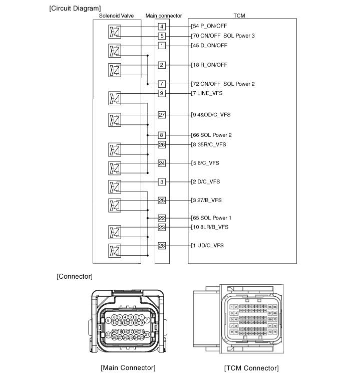 Когда TCM подает переменный ток на электромагнитный клапан, гидравлическое давление Муфта 6 управляется непосредственно электромагнитным клапаном. |