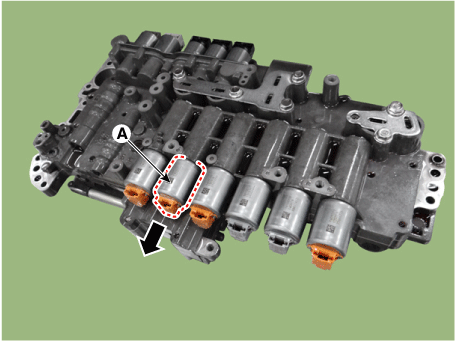 Снимите электромагнитный клапан управления сцеплением 6 (А).
