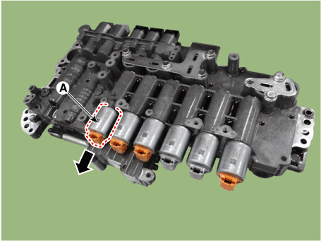 Снимите опорный кронштейн электромагнитного клапана (А).