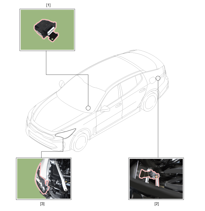 Общий Датчик высоты, соединяющий кузов и подвеску, измеряет информацию об наклоне в зависимости от нагрузки. Автомобиль со стальной подвеской передает сигнал наклона к ECU AFS с помощью жесткого провода. |