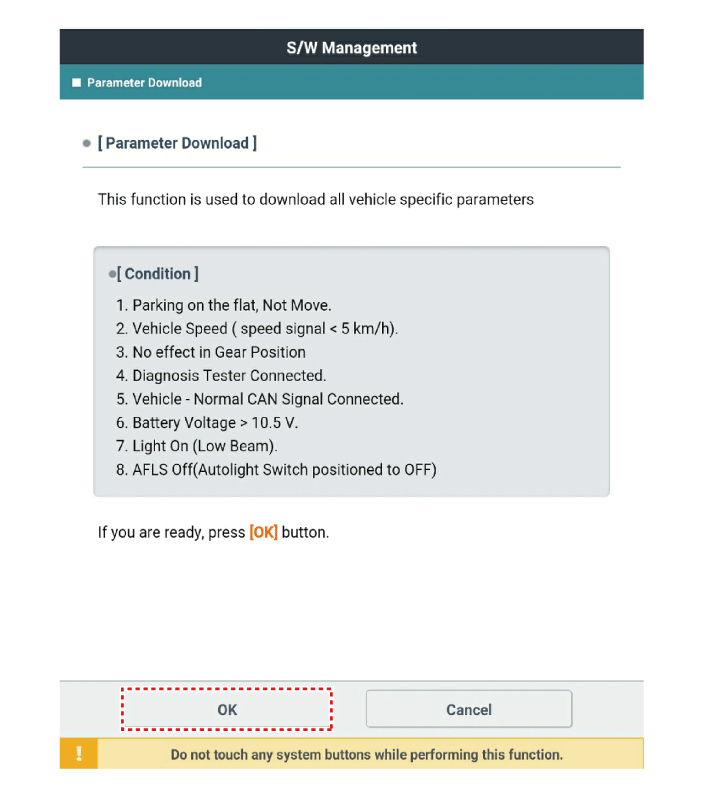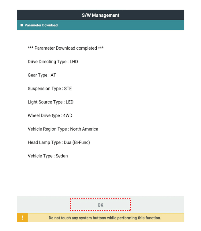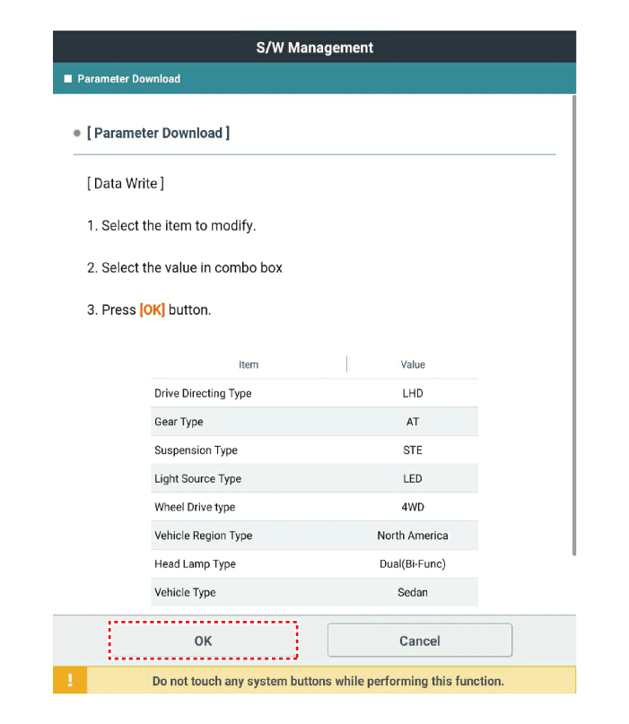 Выберите меню «Загрузка параметров», чтобы определить характеристику автомобиля.