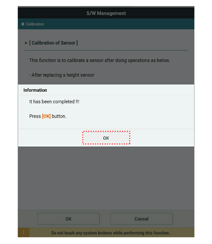Когда «Калибровка системы» выполнена, дисплей выглядит следующим образом.