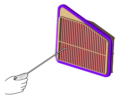 Если элемент воздушного фильтра необходимо очистить, продуйте его сжатым воздухом. показано на рисунке, чтобы очистить его.
