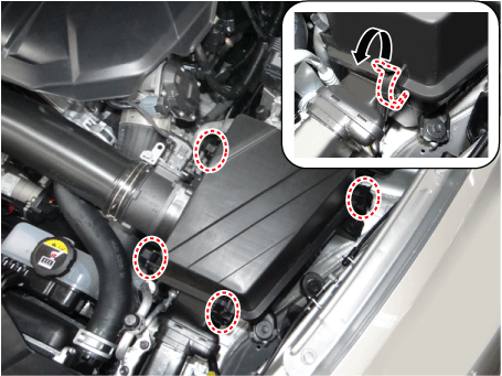 Закройте крышку воздухоочистителя, зацепив зажимы. |