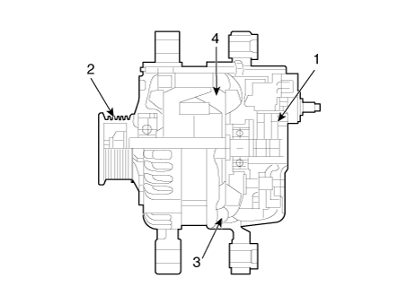 2. Шкив приводного ремня 3. Ротор 4. Статор |
