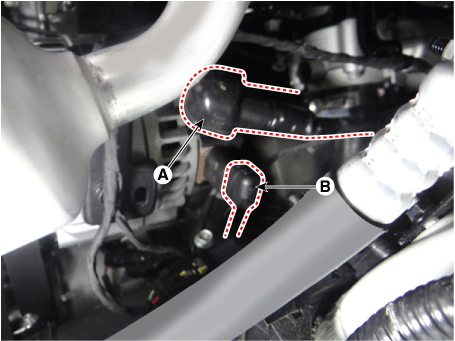 Отсоедините разъем генератора (В) и отсоедините кабель (А) от клемма "В" генератора.
