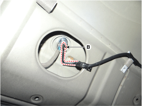 Отсоедините главный разъем антенны на крыше (A) и питание антенны на крыше. соединитель (В).