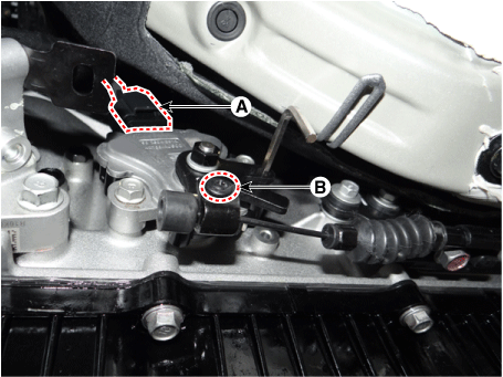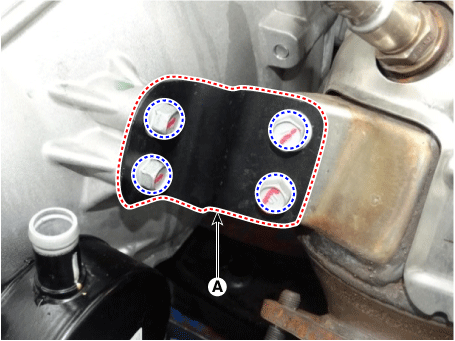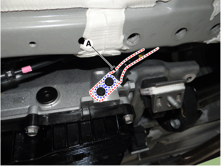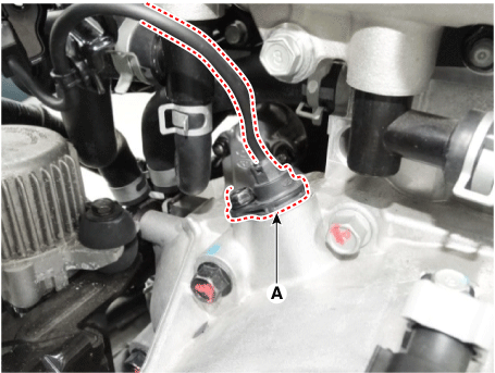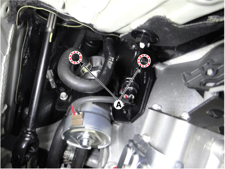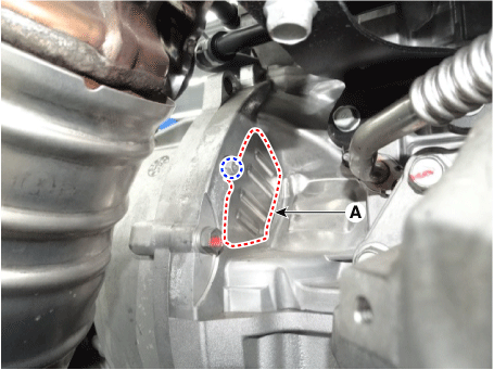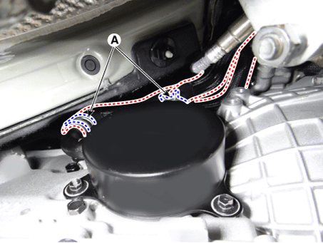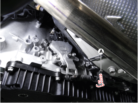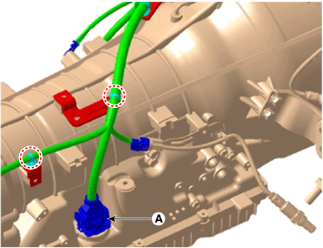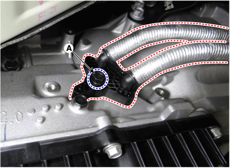 Отсоедините шланг подогревателя ATF (А). [Подогреватель ATF]