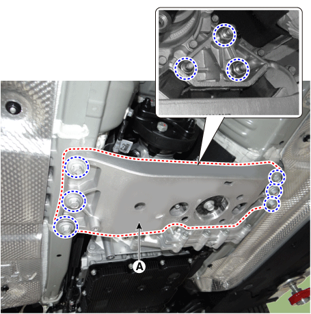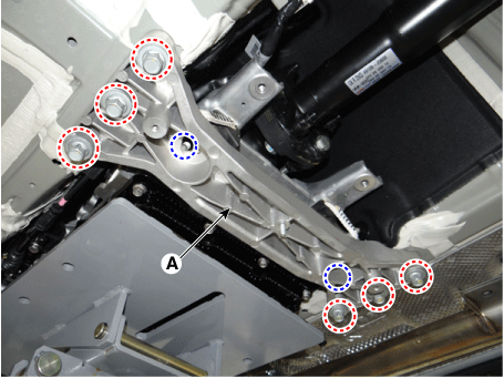 Снимите поперечину (А), подперев коробку передач домкратом. [2WD]
