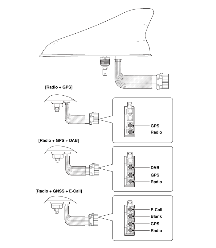 Подсоедините главный разъем антенны на крыше и разъем питания антенны на крыше. |