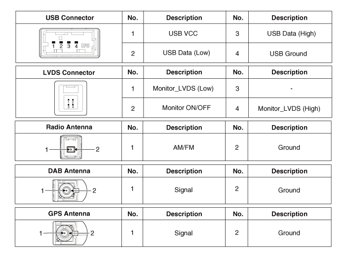 Компоненты и расположение компонентов Расположение компонента 1 . Головное устройство АВН 2. Передний монитор AVN 3. Внешний усилитель 4. Мультимедийный разъем 5 . Руль ...