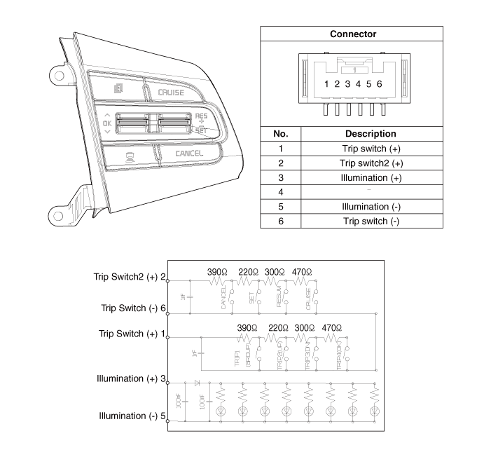 Проверьте сопротивление между клеммами в каждом положении переключателя (RH).