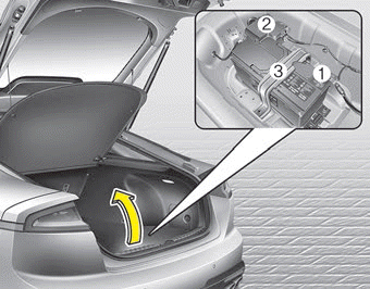 Аккумулятор находится в багажнике под крышкой отсека.