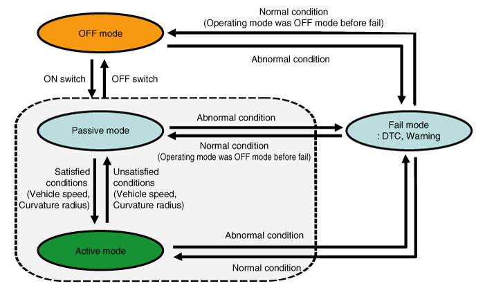 Если операции BCW и LCA работают нормально в режиме Fail, System Operating режим меняется, как показано ниже