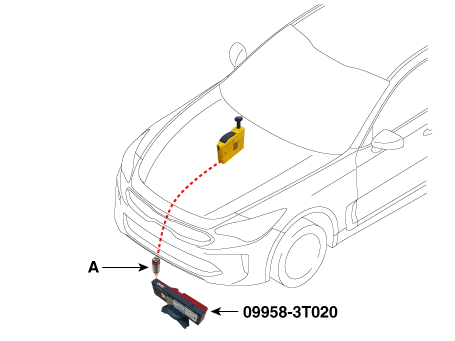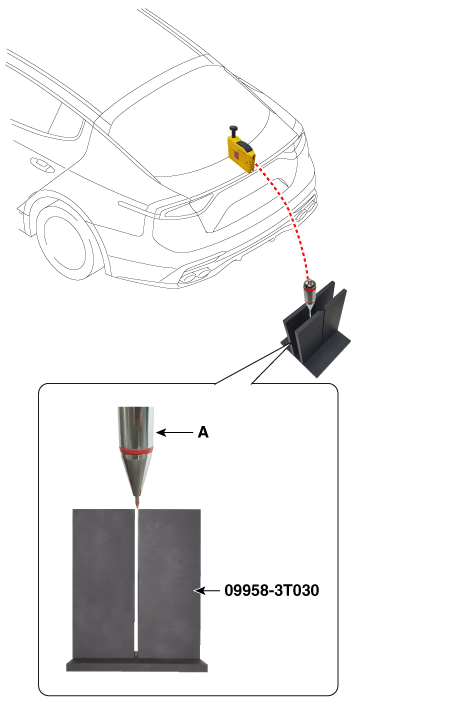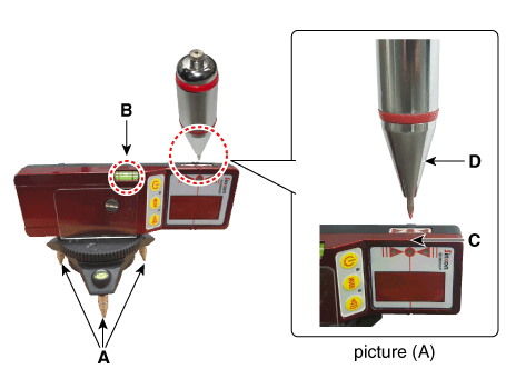 Установите оптический приемник (специальный инструмент: 09958-3T020) под отвесом. (А).