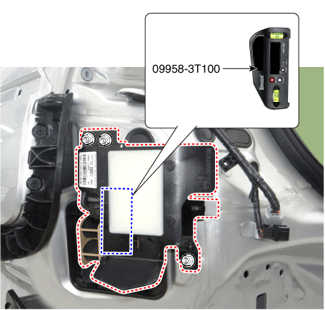 После замены блока BCW или кронштейна со снятым бампером используйте набор инструментов для коррекции блока BCW (специальный инструмент: 09958-3T000) для выполнения коррекция угла.