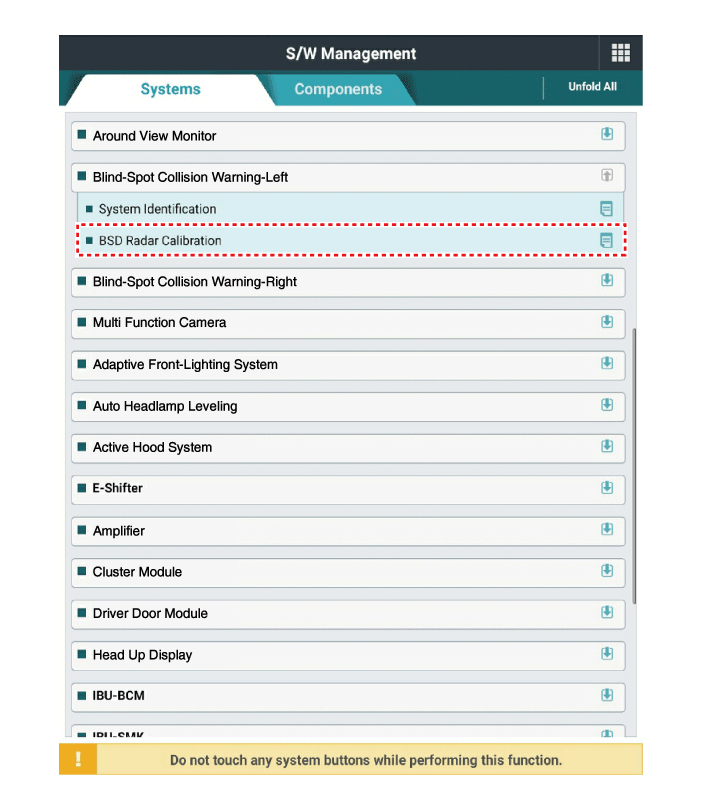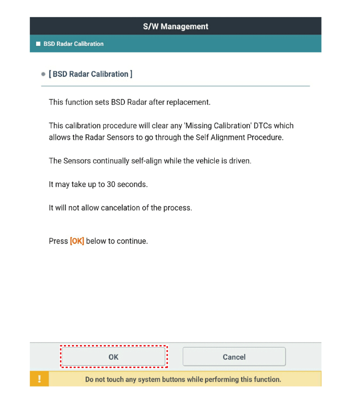 Автомобили с аварией заднего бампера и автомобили, заменившие блоки BCW, должны выполнить выравнивание блока BCW с помощью KDS. |