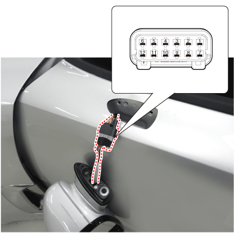 Отсоедините отрицательную (-) клемму аккумуляторной батареи. |