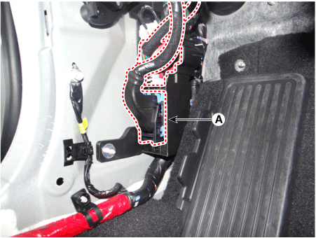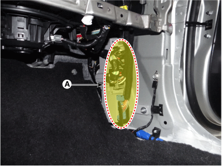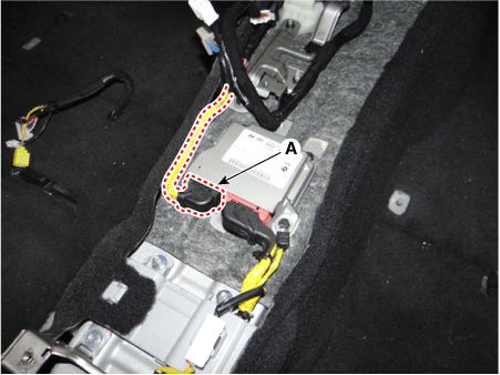 Отсоедините разъем (А) модуля управления подушками безопасности (SRSCM).