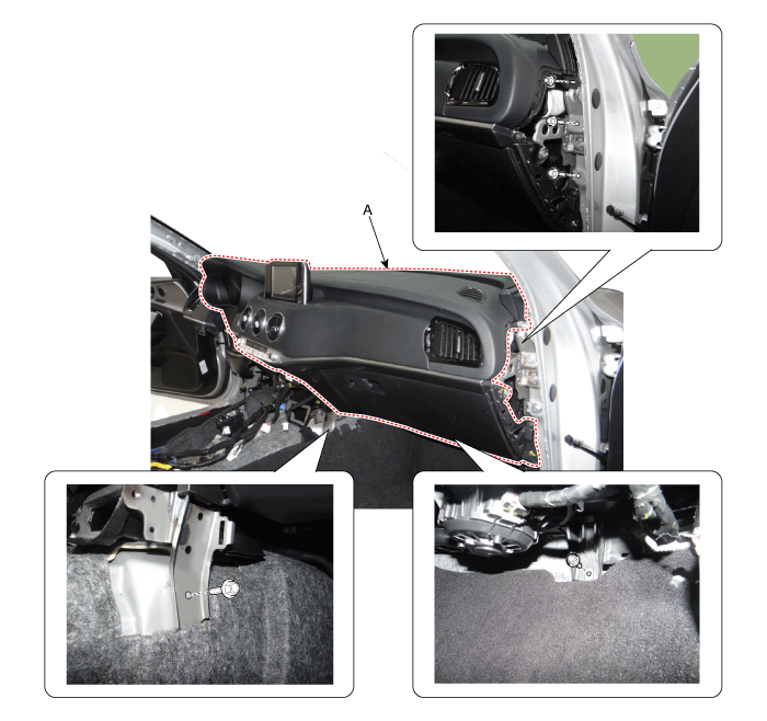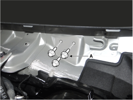 Ослабив гайки и болты, снимите основную защитную накладку и кожух. поперечина в сборе (A) в сборе. [левый]