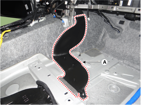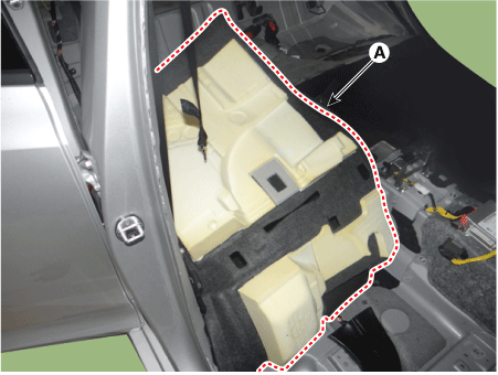 Отделите напольный ковер (А), чтобы освободить место для снятия обогревателя задней части салона. канал.