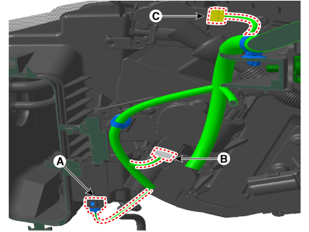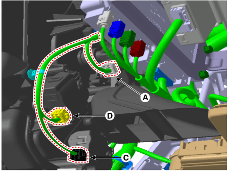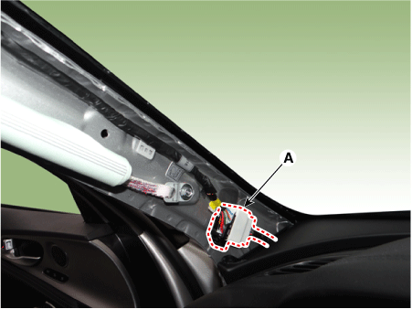 Отсоедините разъем (А) и крепежные зажимы на передней стойке. [левый]