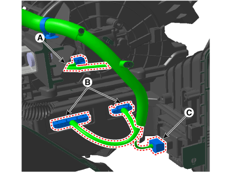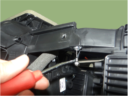 Отделите блок вентилятора (B) от блока обогревателя (A) после ослабления винты.