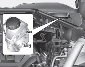Периодически проверяйте уровень жидкости в бачке. Уровень жидкости должен быть между отметками MAX (максимум) и MIN (минимум) на боковой стороне резервуара.