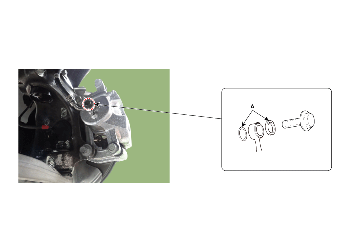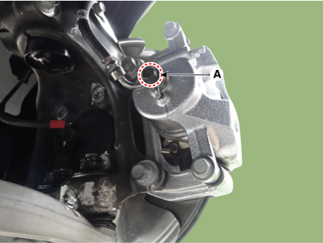 Ослабьте болт шланга переднего/заднего тормозного суппорта (А).