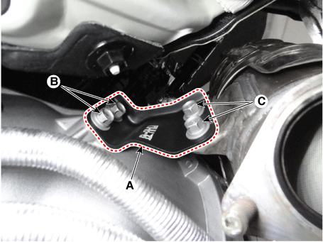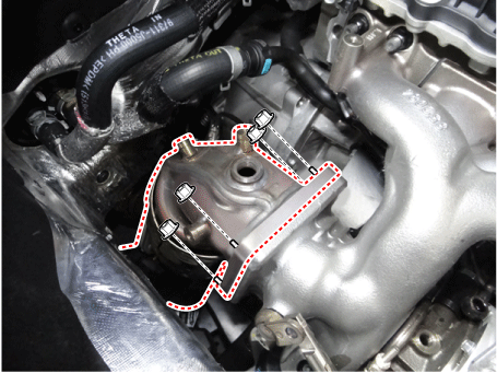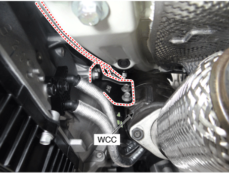 Снимите опору (А) каталитического нейтрализатора прогрева (WCC).