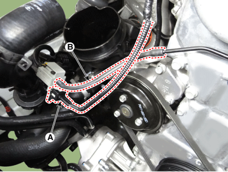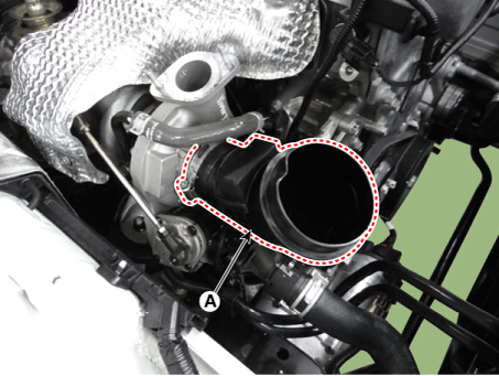 Снимите впускной шланг и трубку промежуточного охладителя в сборе (А).