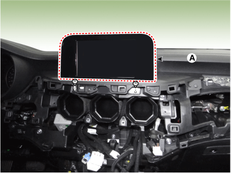 Отделите блок монитора (A) после ослабления крепежных винтов.