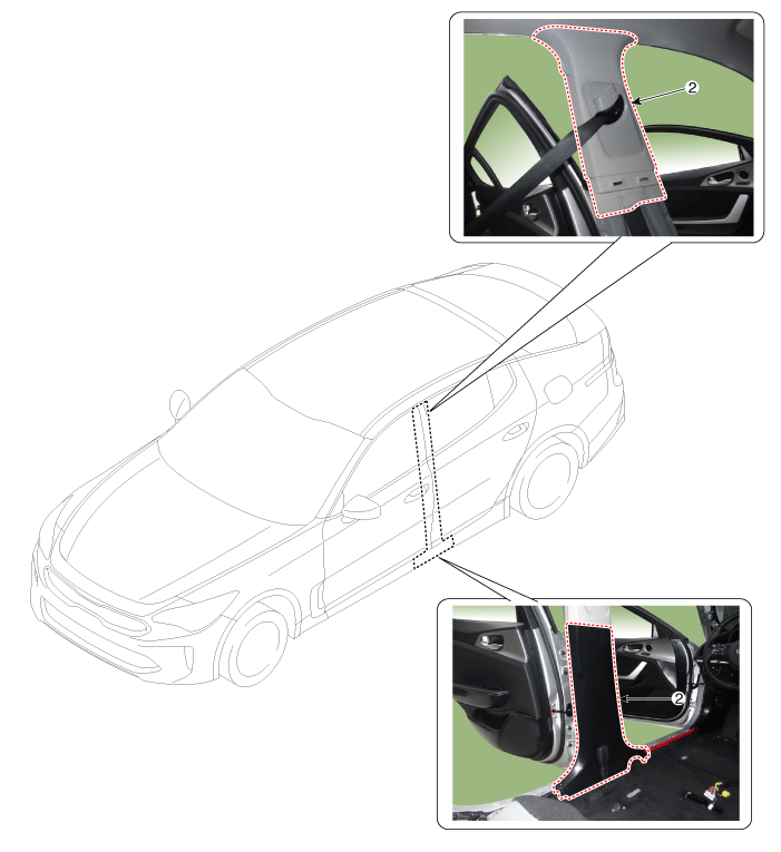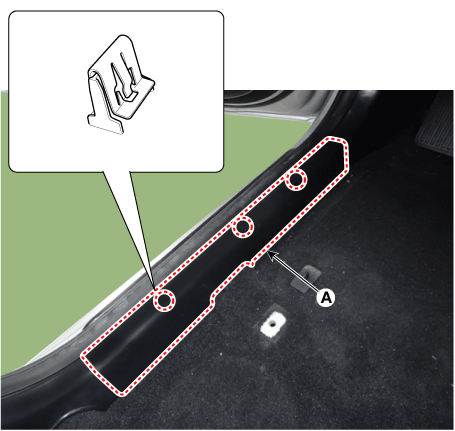 Снимите накладку порога задней двери (А) после удаления монтажного зажима.