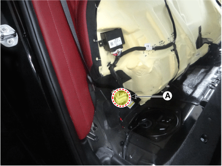 Снимите заднее заднее боковое сиденье (А), потянув его вверх после ослабления крепления. монтажные болты.