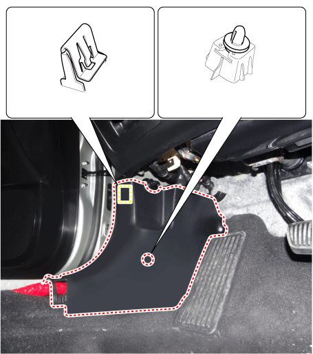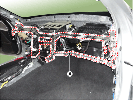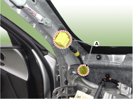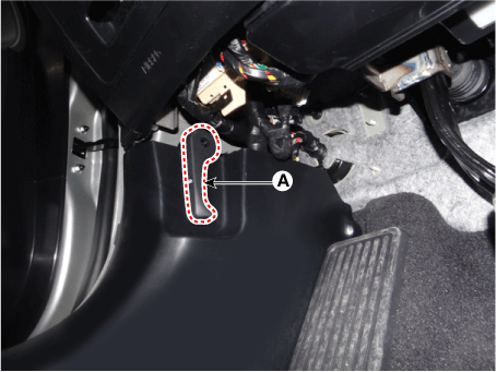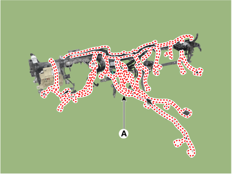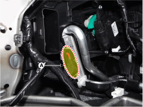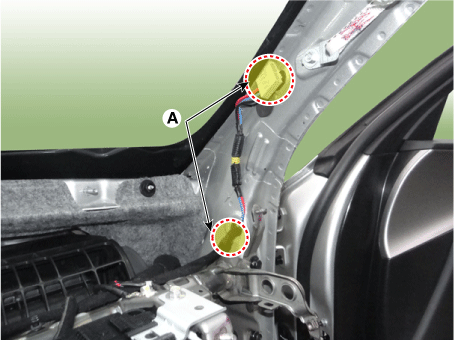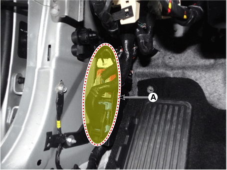 Отсоедините зажимы крепления проводки (А) в передней стойке. [Сторона водителя]