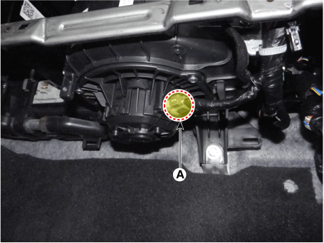 Отсоедините разъем электродвигателя вентилятора (А), а затем отсоедините проводку. монтажные клипсы.