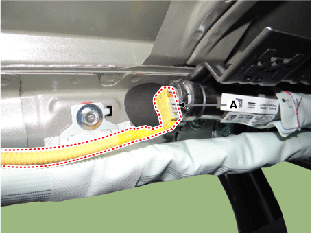 Отсоедините разъем (А) от модуля шторки безопасности.