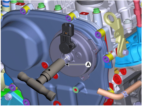 Очистите установочную поверхность заглушки двигателя E-CVVT (A) с помощью очистителя масла.