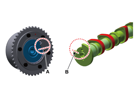 Установите впускной узел E-CVVT (A) и выпускной узел CVVT (B).