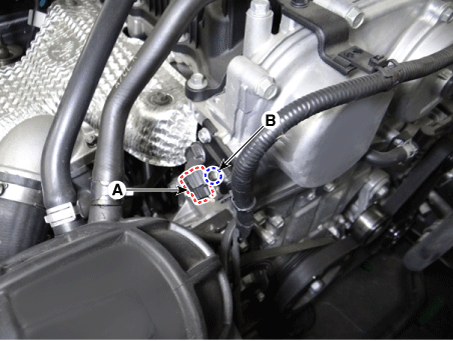 Отсоедините разъем клапана управления маслом CVVT (А).