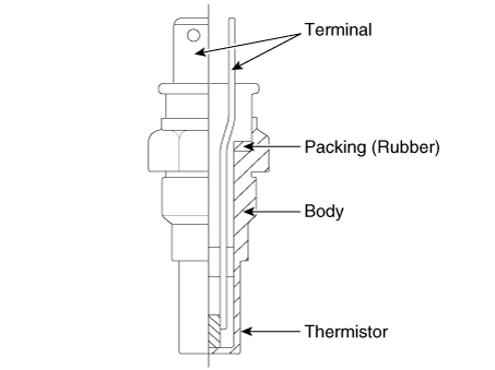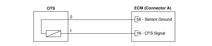 После погружения термистора датчика в охлаждающую жидкость двигателя измерьте сопротивление между клеммами OTS 1 и 2. |