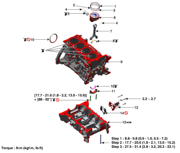 2. Поршневое кольцо (№2) 3. Масляное кольцо 4. Стопорное кольцо 5. Поршневой палец 6. Поршень 7. Шатун |