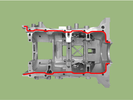 Нанесите жидкий герметик на сопрягаемые поверхности блока цилиндров и лестницы. рамка.