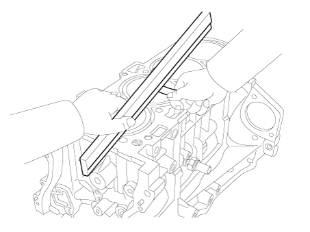 Осмотрите верхнюю поверхность блока цилиндров на плоскостность. Используя прецизионную линейку и щуп, измерьте поверхности блока цилиндров и коллекторов на коробление.