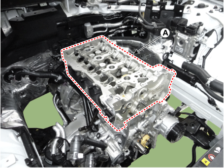 Осторожно установите головку блока цилиндров (А), чтобы не повредить прокладку. с нижней частью конца.