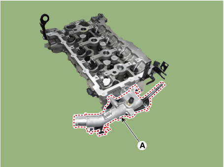 Установите блок управления температурой воды (A) с цилиндра. голова.
