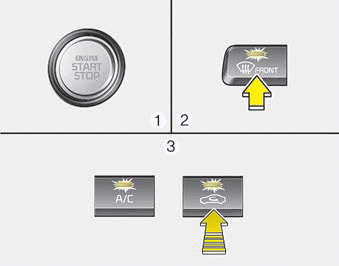 Нажмите кнопку обогревателя ветрового стекла в течение 3 секунд, когда ключ зажигания находится в положении ВКЛ. Когда система ADS отключена, индикатор на кнопке будет мигать 3 раза в 0,5 секунды, а на дисплее будет отображаться положение «ADS OFF». информационный экран климат-контроля. При сбросе системы ADS индикатор на кнопка будет мигать 6 раз в 0,25 секунды, а положение «ADS OFF» исчезнет. на информационном экране климат-контроля. Вы можете установить или отключить автоматическое удаление запотевания. Система на экране выбора климатической информации AVN. Если батарея разряжена или отсоединен, система автоматического предотвращения запотевания будет сброшена. Отрегулируйте функцию соответствующим образом.